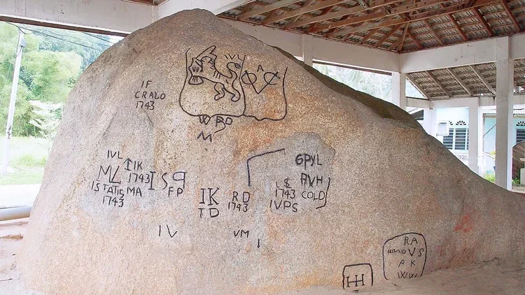 Batu Bersurat or called as Sacred Rock / Tiger Rock in Pangkor Island is a large rock at Kampung Teluk Gedung inscribed with graffiti made by Dutch soldiers in the 1700’s. These soldiers were based in the Dutch Fort just about 200 metres away, in the years 1743-1748 and the date 1743 is carved on the rock five times.