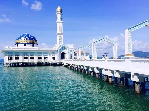 located in Kampung Teluk Gedong, Pangkor Island. This is an iconic monument of Pangkor Island, al-Badr Seribu Selawat Mosque is the first floating mosque in Perak. The mosque has been appropriately named Seribu Selawat in reference to the 1,000 prayers that have been carved on the walls and pillars of the mosque, inside and out. Another distinctive feature of the mosque is the unique Perak architecture, with aspects of Turkish and Middle Eastern influences.